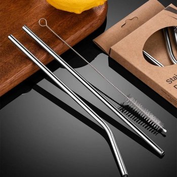 Reusable Stainless Steel Drinking Straws Set with Cleaning Brush – Eco-Friendly